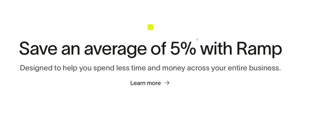 “Save an average of 5% with Ramp” is pretty solid. No one makes a similar claim. And since Ramp dedicates a whole page to this idea, it’s given the attention it deserves. Nicely done. Score: 6/10.