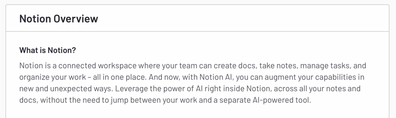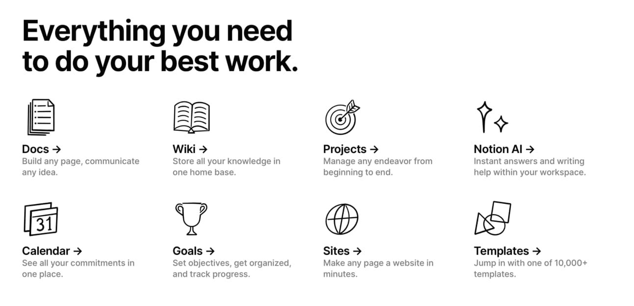 Clarity of Solution. Does Notion clearly explain what it does, who it’s for, and what to expect when you use it?