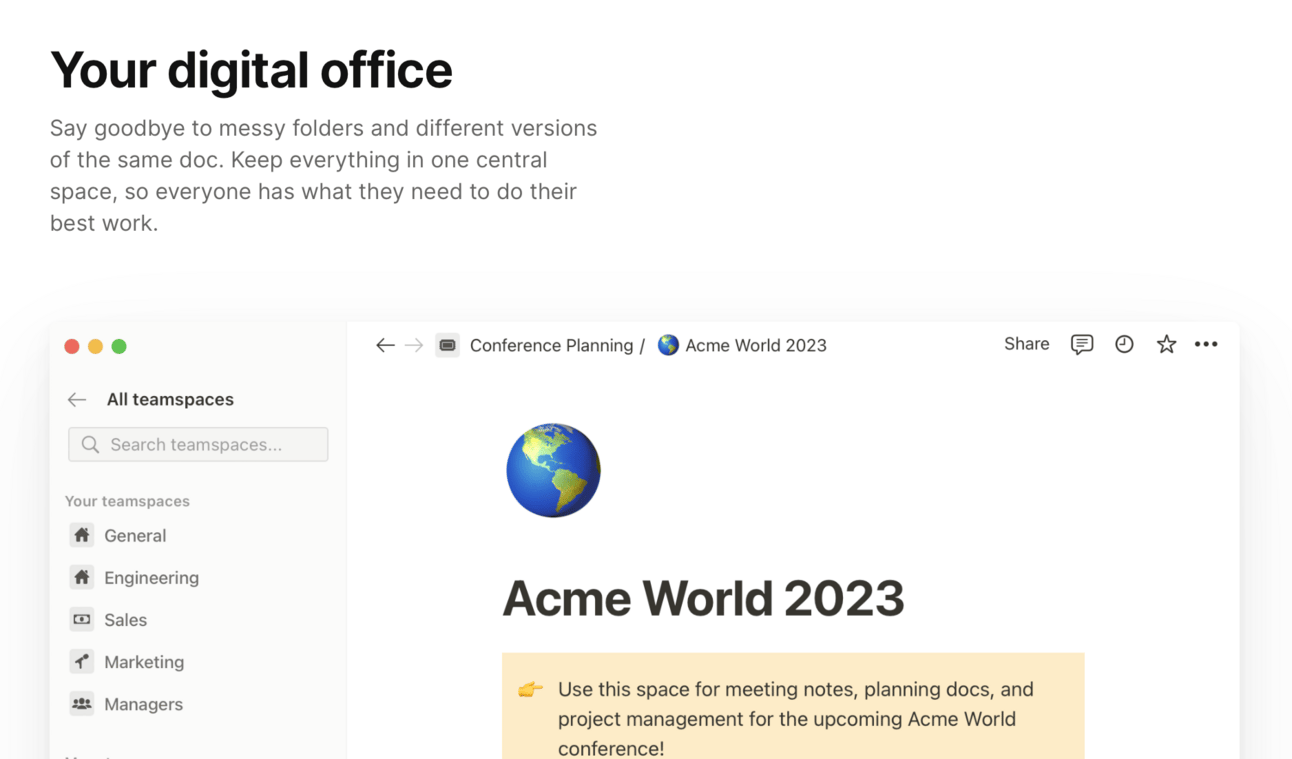 Productivity and project management software like notion is one of the most mature and crowded product categories out there. That’s why Notion’s narrative should have one clear mission: to show the world why its software is different from everything else, and why that difference matters to buyers.